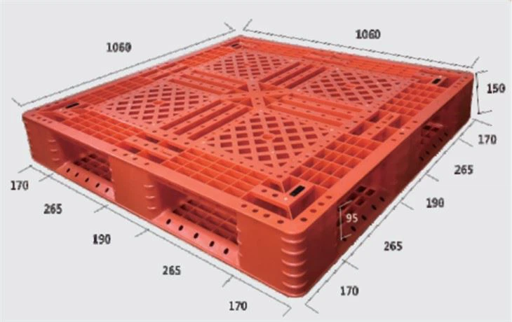 1060x1060x150mm Heavy-duty reusable cold storage plastic pallets Compared with traditional wooden pallets, plastic pallets can bring many benefits. In food safety, plastic trays are effective against mildew, and insects, and are easy to clean or sterilize. Plastic pallets are suitable for adding RFID tags. Relying on the built-in RFID tag position of the pallets, customers can track pallets along the supply chain and increase the transparency of the supply chain. Also, plastic pallets have a longer lifespan than wooden pallets, so the cost is lower as fewer RFID tags need to be purchased.